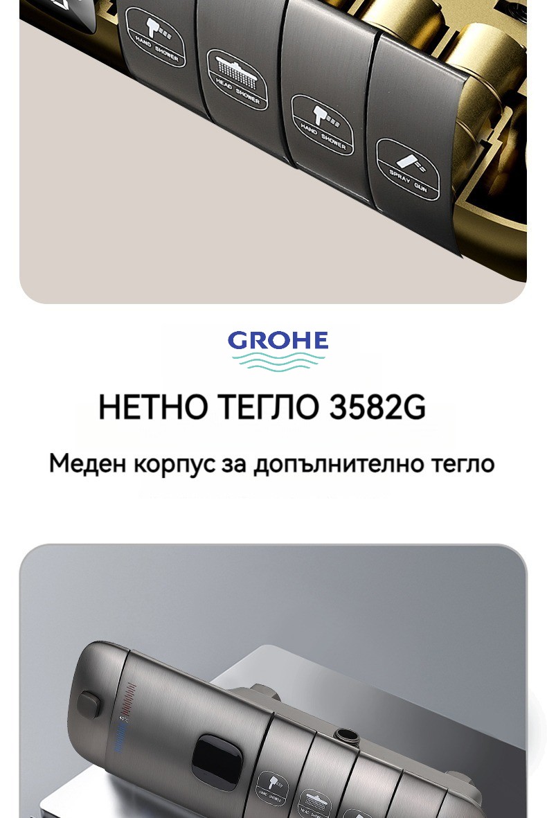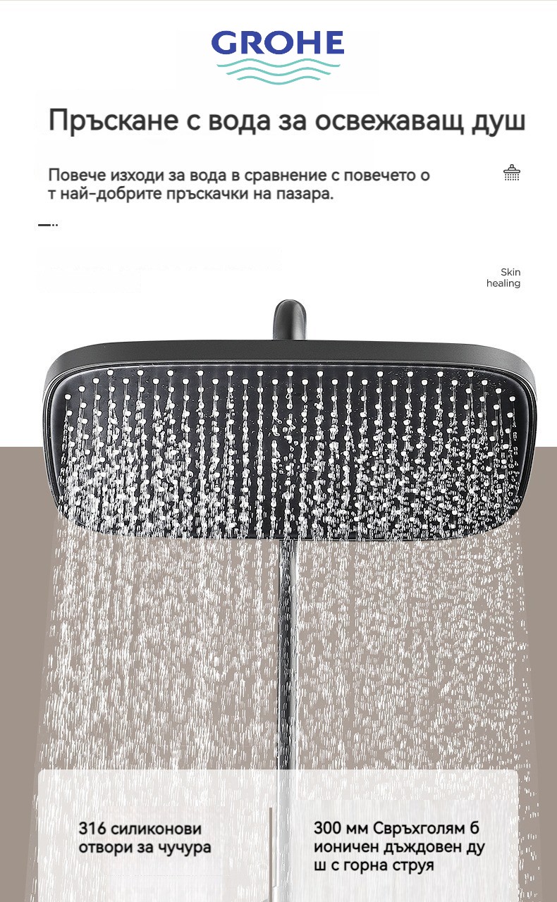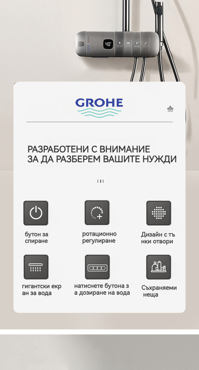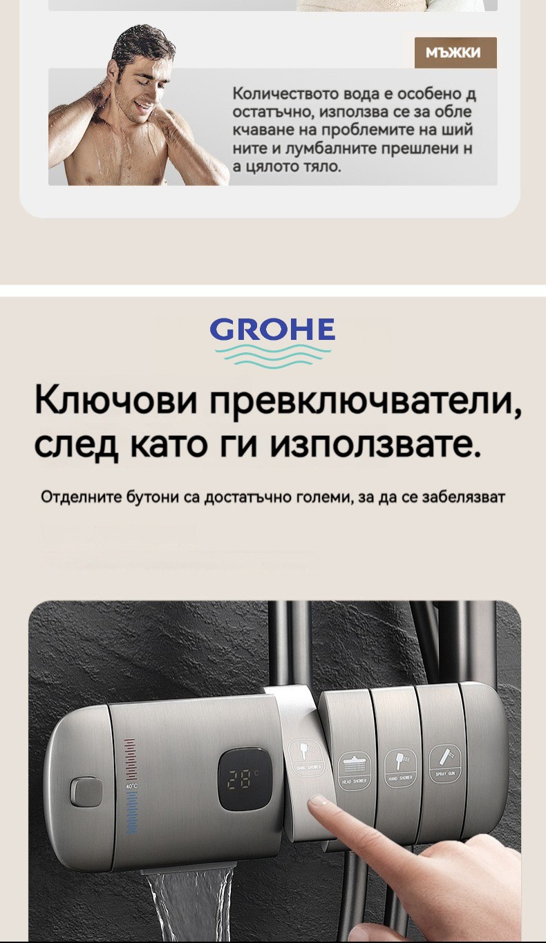 Голямата душ група е най -новата технология за автоматично управление на температурата. Той е оборудван с пречиствател за вода, ограничена цена от ограничено време и директните продажби на производителите