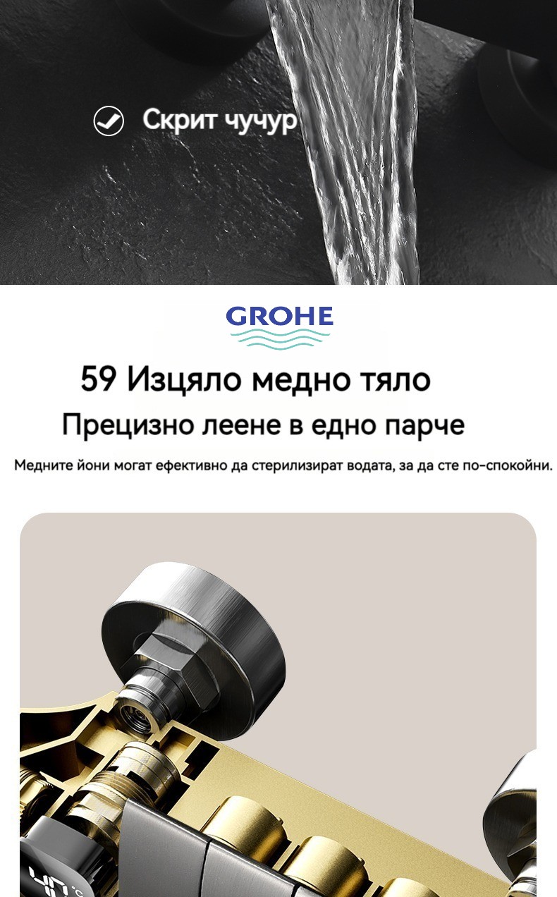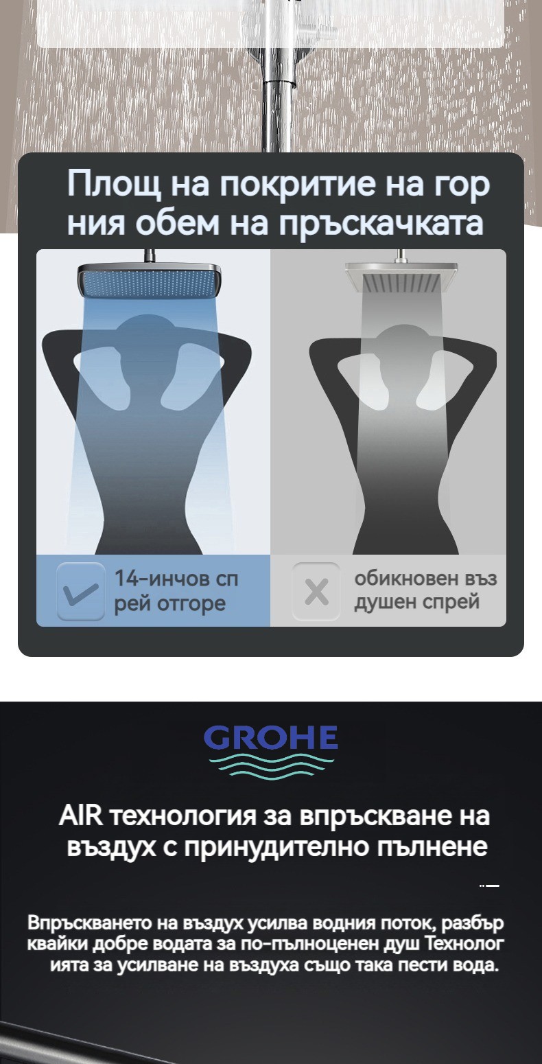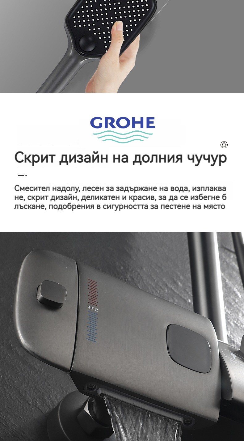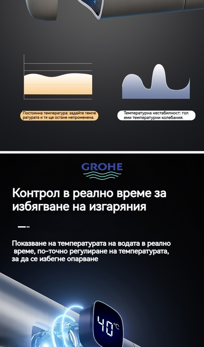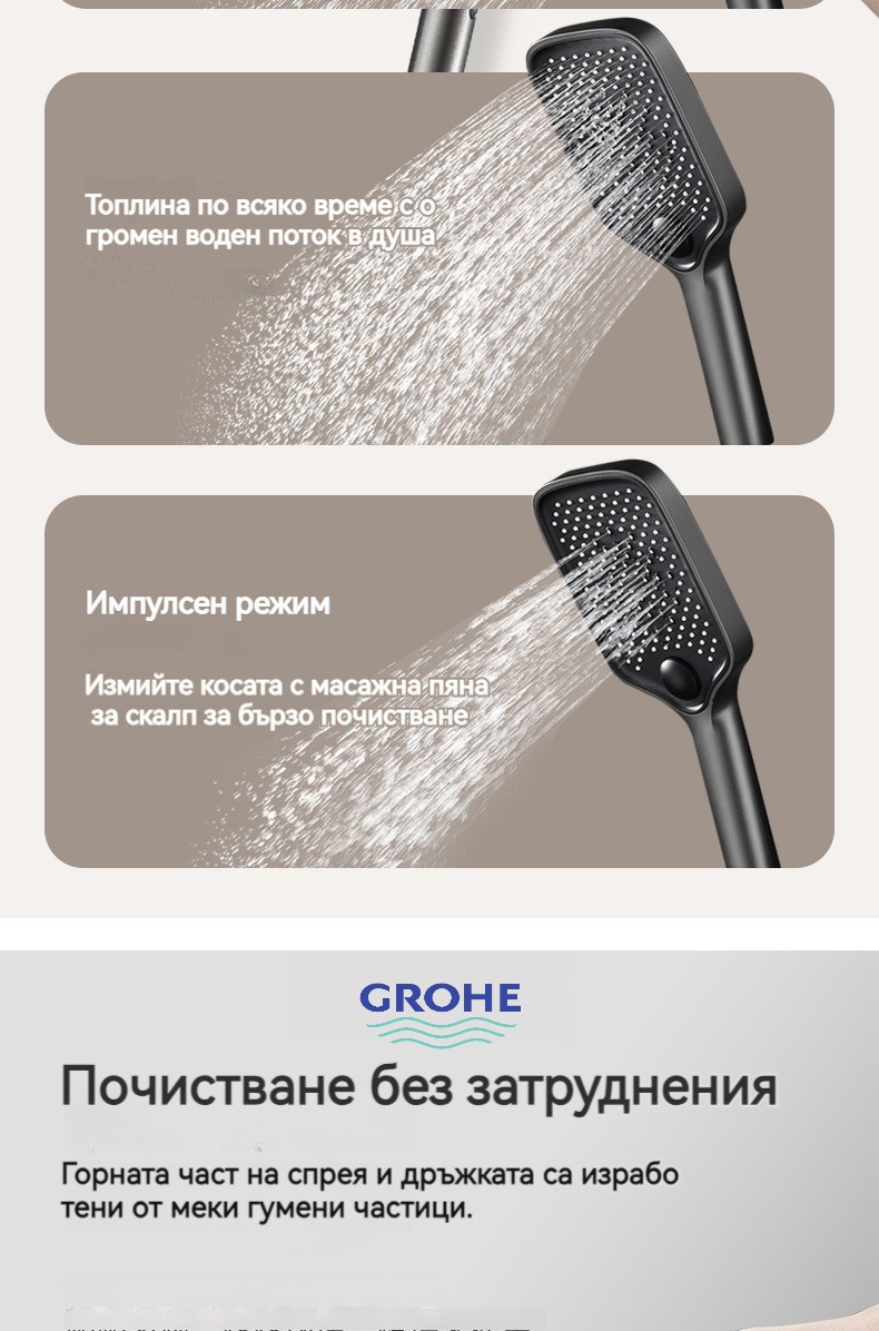 Голямата душ група е най -новата технология за автоматично управление на температурата. Той е оборудван с пречиствател за вода, ограничена цена от ограничено време и директните продажби на производителите