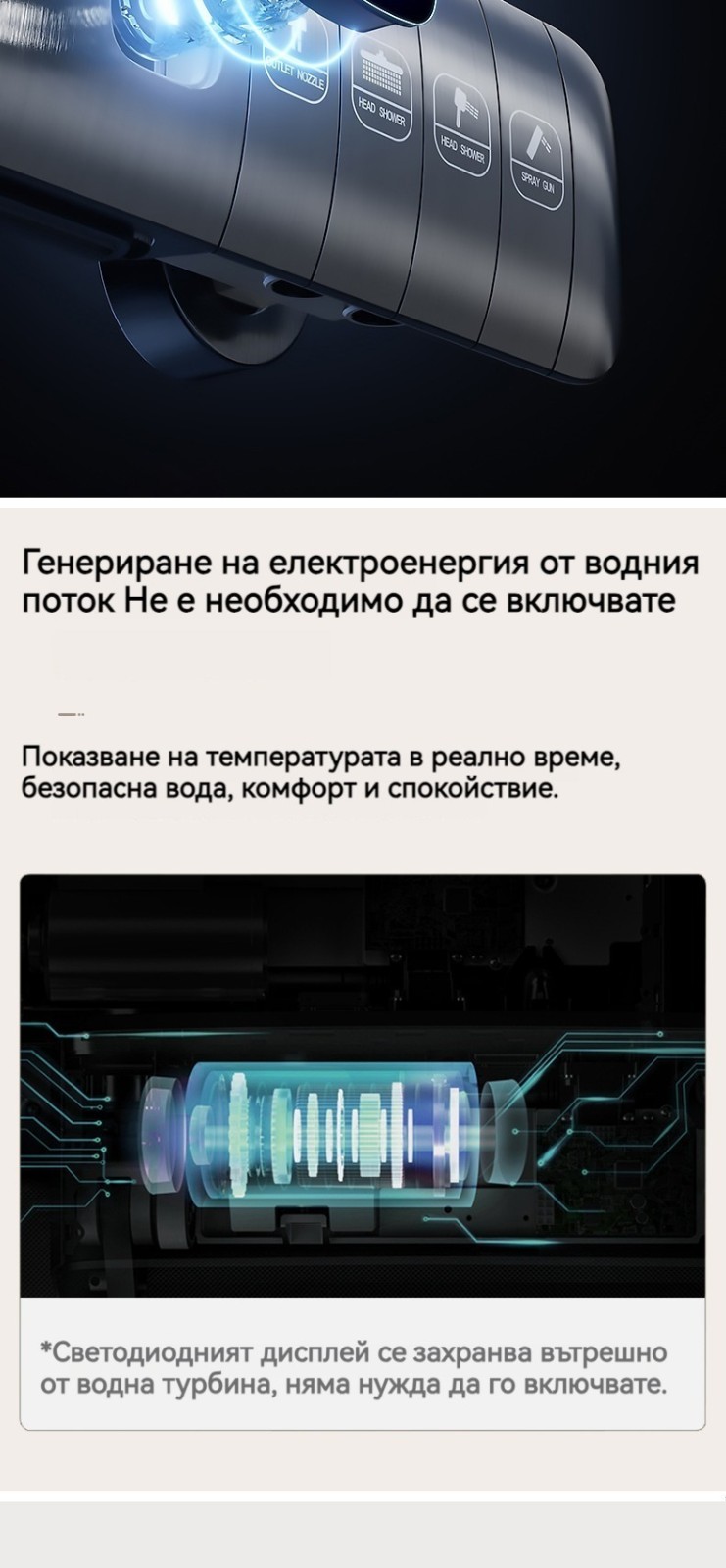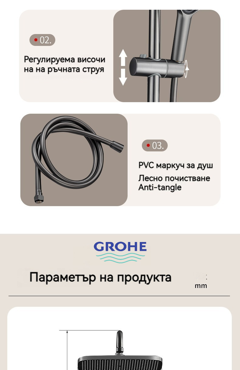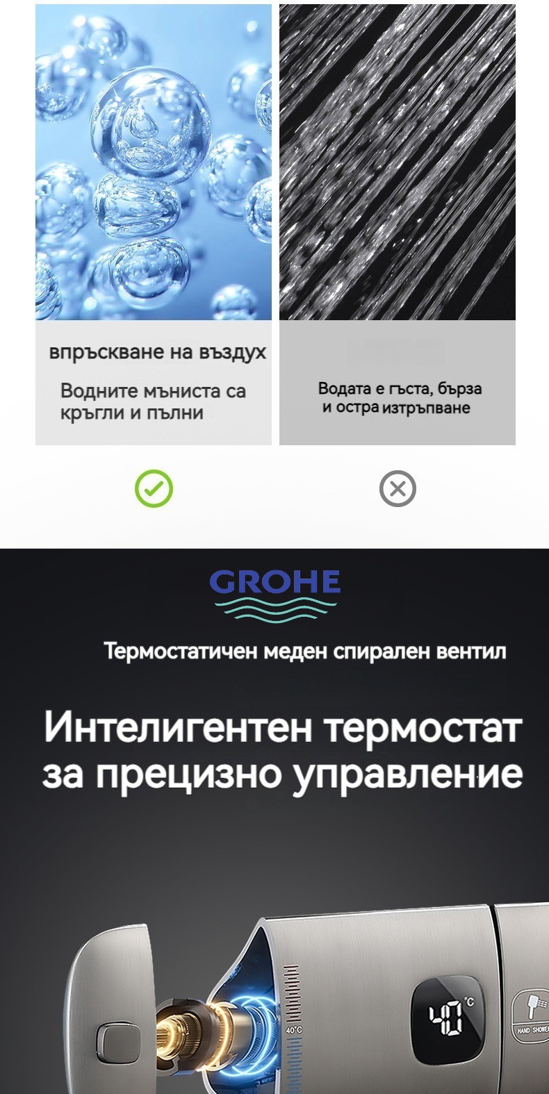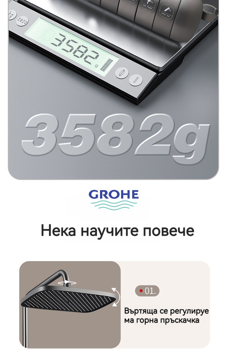 Голямата душ група е най -новата технология за автоматично управление на температурата. Той е оборудван с пречиствател за вода, ограничена цена от ограничено време и директните продажби на производителите